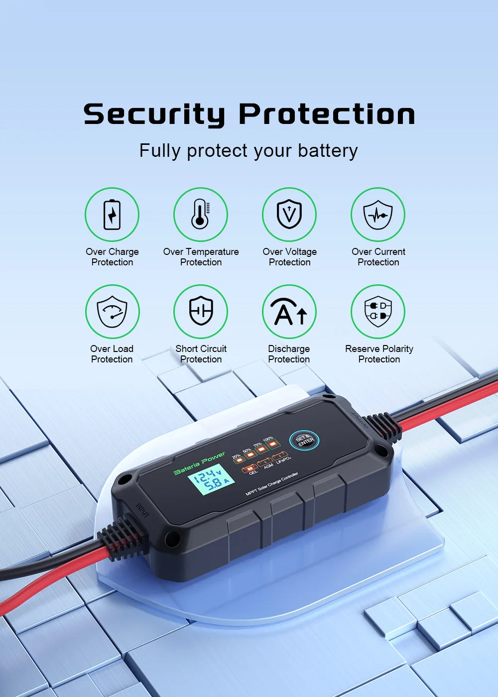 LCD display and LED indicator light brings convenience for you to monitor the working status of the solar panel and battery.
