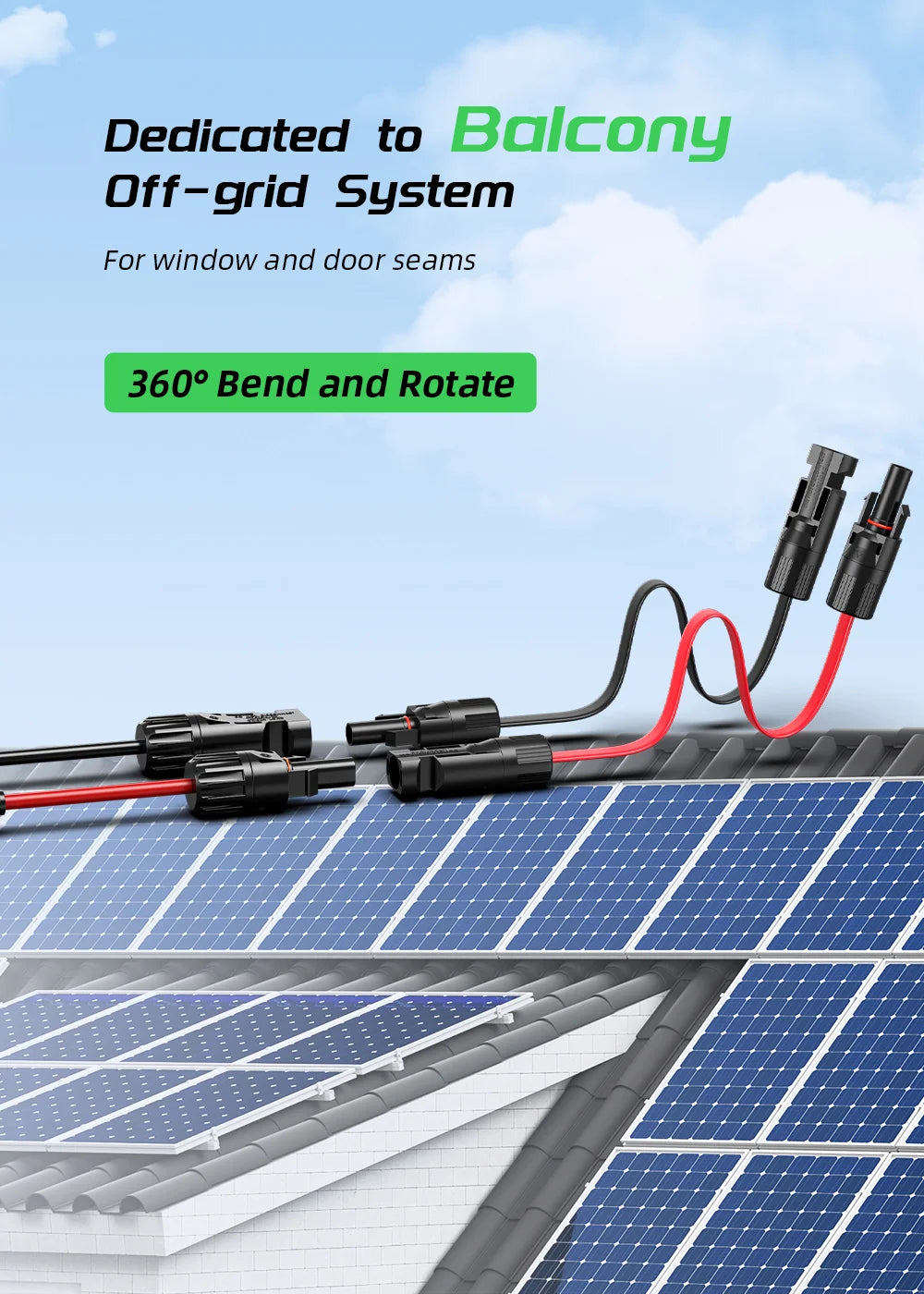 - Smart Design: The flat solar cable bushing impresses with its high flexibility so that the flat solar wire can be installed to save space. The door or window sashes can be closed without any problems when we use the super flat solar cable.