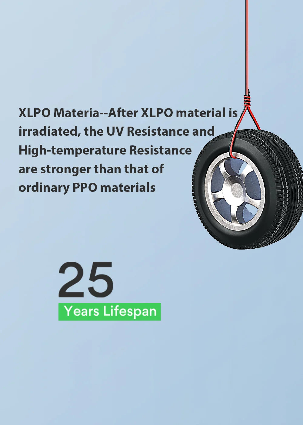 - High-quality Cable Material: The cable is made of XLPO material jacket and insulation material, which is resistant to high and low temperatures, fireproof and anti-corrosion, and anti-ultraviolet radiation.