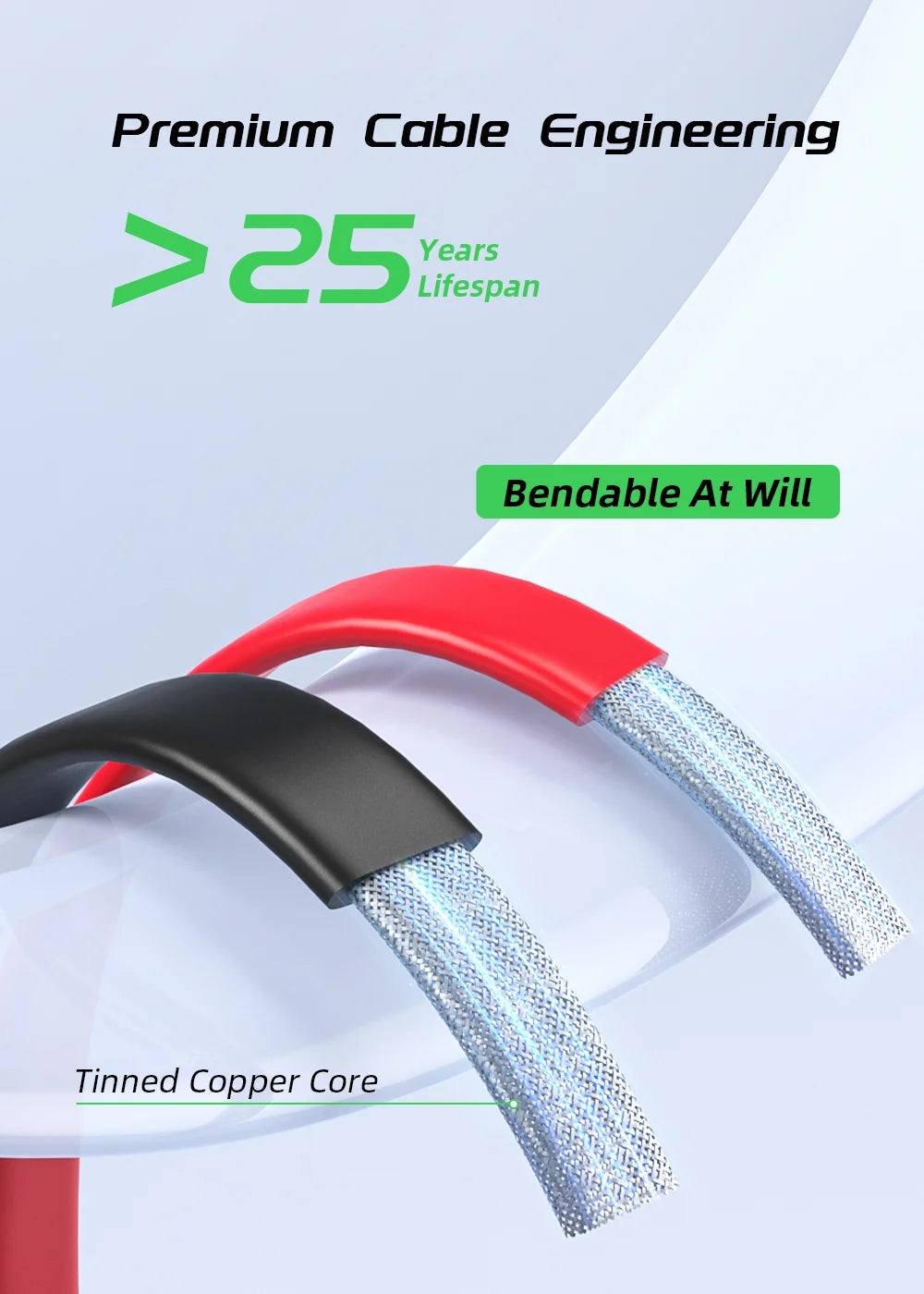 - Double Sealing Ring & Flame Retardant: IP67 waterproof and UL94 V-0 flame retardant, durable in outdoor environments, the double sealing ring design improves waterproof performance and increases the cable's enforceability in severe weather such as rain, snow, and wind.